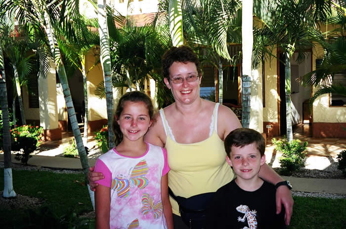 After class we went up to the bank with another student we met named Claudia. Claudia is from Switzerland and she is staying until March 10 to study. Another girl from Quebec also walked up with us. After exchanging some money we took a look at Flamingo Resort. CPI students are allowed to use the resort facilities to swim. The kids talked me into taking the 2 PM bus back to the villa and then coming back up to the resort to swim; and then catching the 5 PM bus back to the cabana. Victor (the bus driver) dropped us off at 2 PM and then swung back around 10 minutes later to take us up to the resort. The kids LOVE Victor! (See January 28th to see photos of Victor)