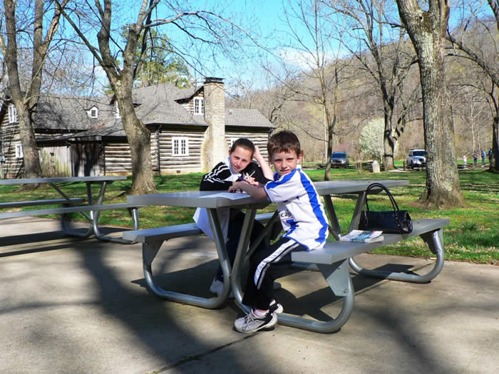 Grayson and Darby At Abe Lincoln's Birthplace in Hodgenville