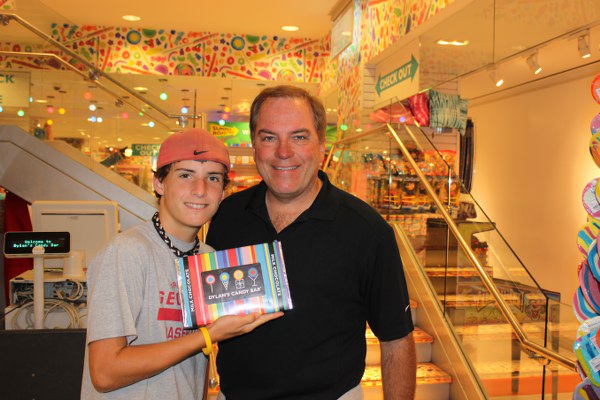 Grayson and Mark with a massive candy bar from Dylan's