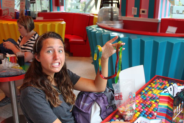 Darby's Looks Scared of her Gummy Worm!