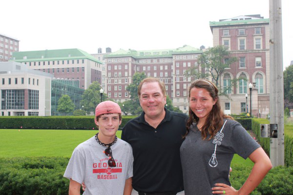 Grayson, Mark,and Darby in front of cousin Caitlyn's soon to be dorm at Columbia!