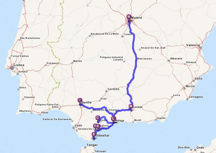 A map of our travels while in Spain. We drove over 1,500 miles during our visit.