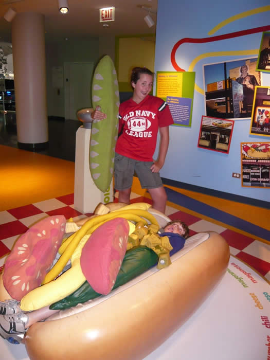 We were planning on heading east to South Bend this morning, but we decided that there was more of Chicago that we wanted to see before we headed out. After walking around a bit and deciding to forgo the Sears Tower one hour wait time, we caught the 151 bus north up to Lincoln Park. We visited to the Chicago History Museum to learn more about the city of which we have become so fond. It is a very comprehensive collection that gave us a very good overview of the city. Children under 12 are free and adult admission comes complete with an audio tour which describes the various phases or Chicago’s past. We spent several hours pouring over the exhibits which included 7 dioramas depicting the city’s history. The dioramas themselves were a wonder as they were put on display in the museum in 1932. We learned about the great Chicago Fire of 1871, the World Fair in 1893 which debuted the first Ferris Wheel in the world, and learned about Al Capone and his mobsters among many other things. Grayson’s favorite things were Michael Jordon’s shoes and Walter Peyton’s jersey. The kids loved playing in a hands-on area of the museum and making themselves into life-sized hot dogs! After a jam-packed day we headed east to South Bend to the Fighting Irish country of Notre Dame. We arrived in time to watch Georgia baseball defeat Miami in the College World Series.