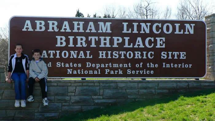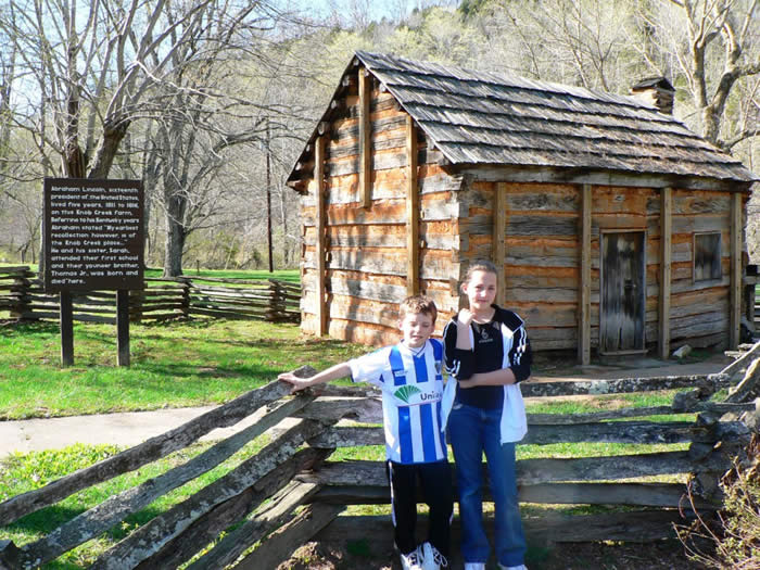 Grayson and Darby At Abe Lincoln's Birthplace in Hodgenville