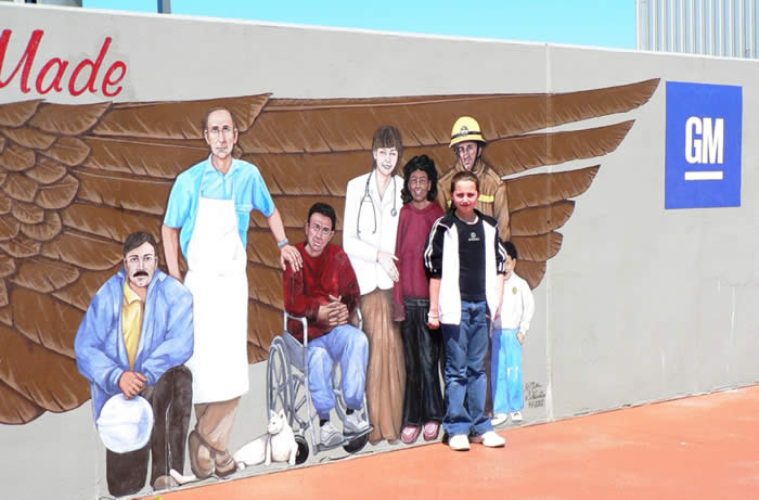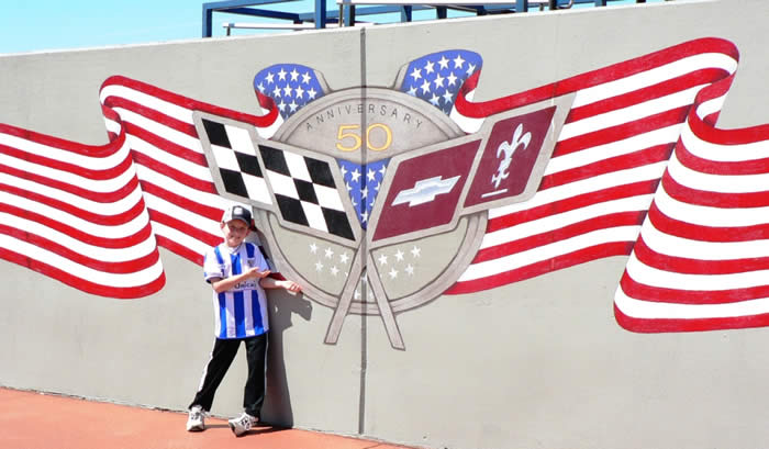 Grayson by the 50th Year Anniversary Mural at the Corvette Plant
