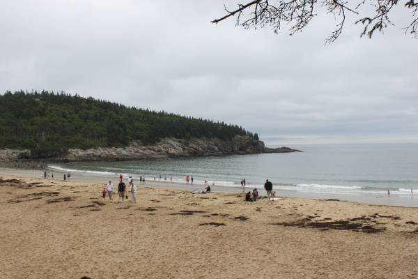 This is the view behind the Jordan Pond restaurant of Jordan Pond