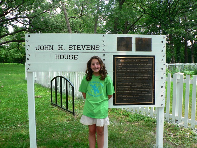 Mark and Grayson in front of the John H. Stevens House