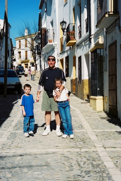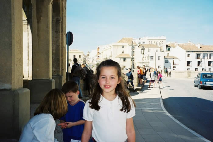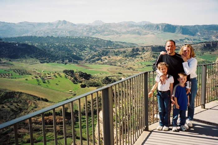 Darby and Grayson pose by the statue of famous bullfighter Pedro Romero