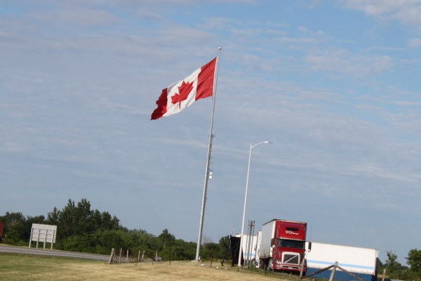 The Canadian flag flying