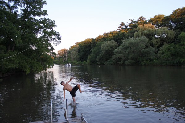 Grayson skipping stones in Lake Ontario