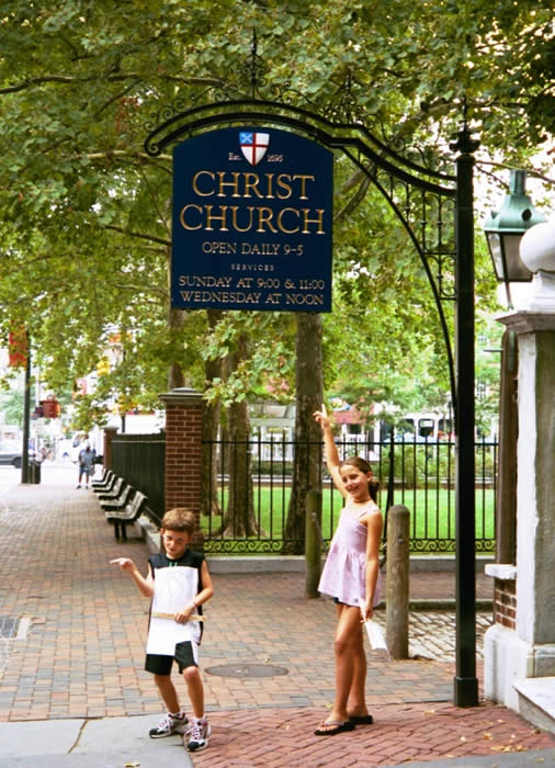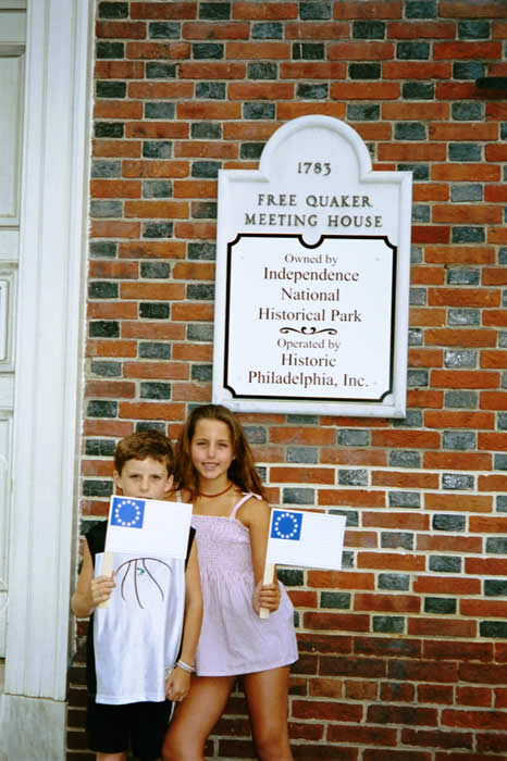 At the Free Quakers Meeting House with the "Once Upon a Nation" Flags