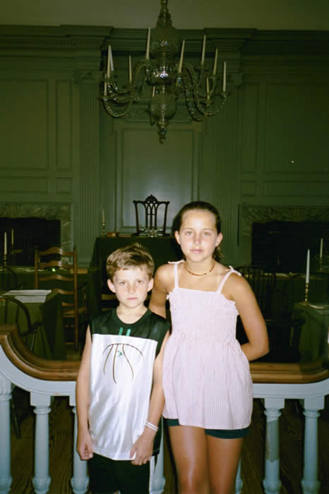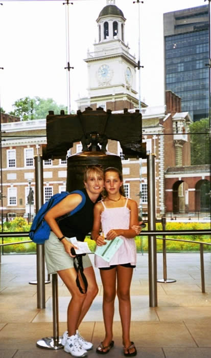 Mom and Darby at the Liberty Bell with Independence Hall in the background