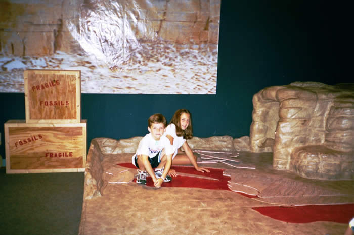 Darby and Grayson put together dinosaur fossil at the archeology site
