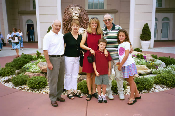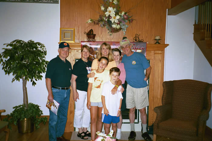The Georges, Jonna, Grayson, Granddaddy, and Darby in front of Sight and Sound
