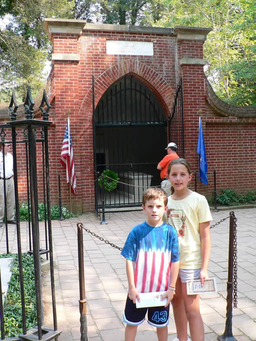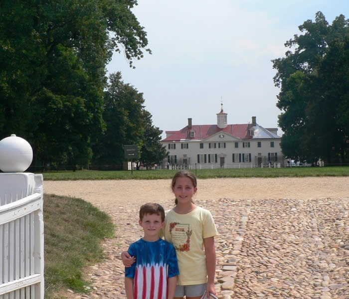 D&G pose with George, who overlooks the 8,000 acres of Mt. Vernon