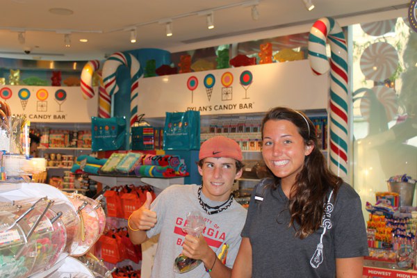 Grayson and Mark with a massive candy bar from Dylan's