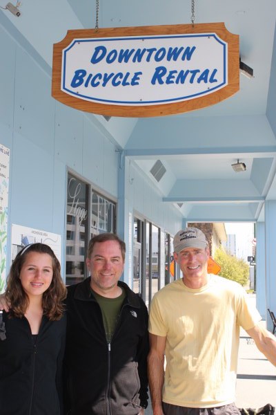 Darby, Mark, and Peter (owner) at the bike rental shop downtown