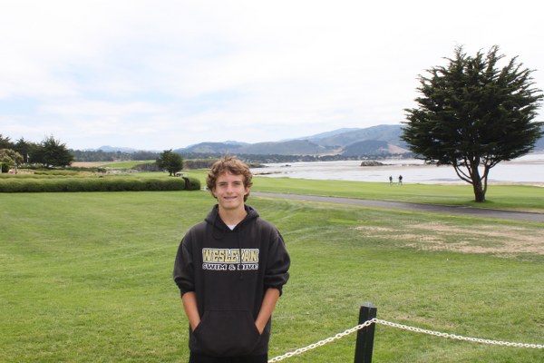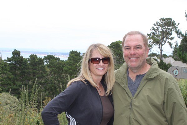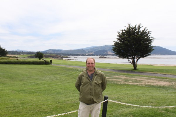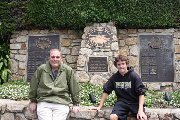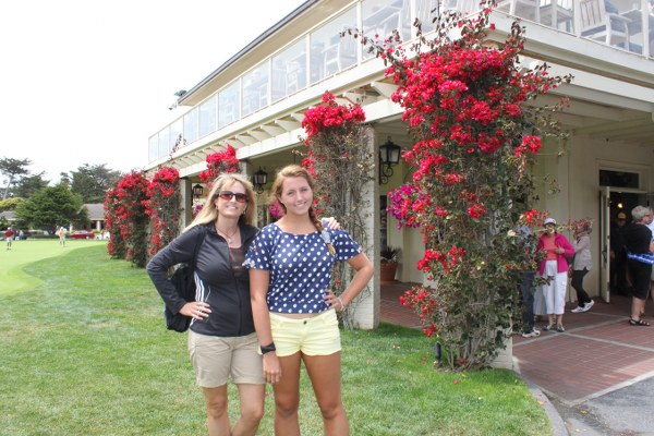 Jonna and Darby in front of the Pro Shop at Pebble Beach