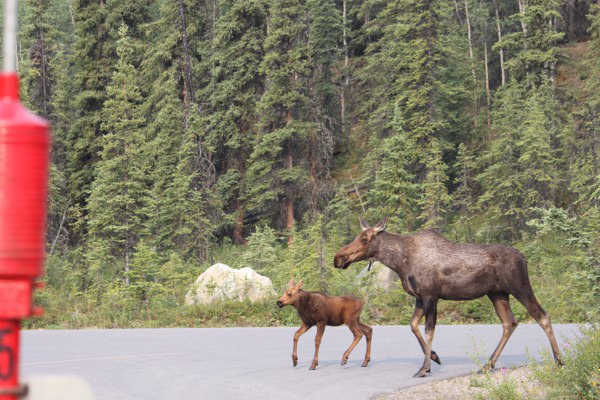 A moose surprised Jonna at the Riley Creek Campground