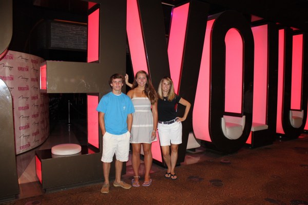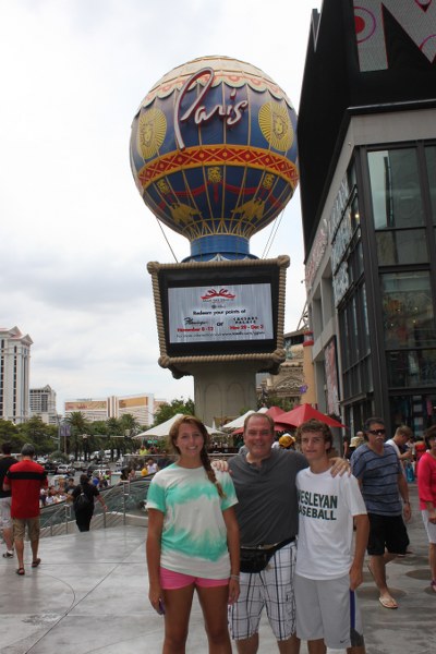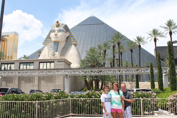 Grayson, Darby, and Mark in front of Luxor Hotel