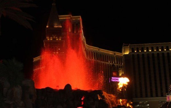The "exciting" volcano show in front of the Mirage!