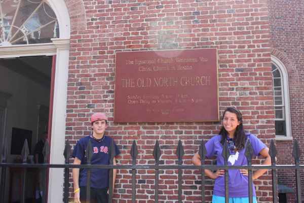 Since Darby's ankle is still hurting, walking the Freedom Trail was out of the question today :( but to make lemonade from lemons, we decided to embark on the "Boston Duck Tour". These types of tours typically run counter to the "normal" Blount Adventure, but today we had to do it if we wanted the kids to really see the city. We signed up for the 1:30 pm tour and had a few hours to kill beforehand so we risked life and limb by headed by car across Boston to the Old North Church and Paul Revere's House. We were able to find parking which was a miracle; thankfully Mark knows how to parallel-park really well! We had the opportunity to explore both the church and Paul Revere's House before heading back to the Prudential Center for the duck tour. The tour turned out to be really informative and fun and we were glad we did it! By the time it ended, it was time to drop Grayson and Mark back at Fenway for the tour and game and Darby and Jonna headed to the mall for a little retail therapy and dinner! Mark and Grayson had a magical experience at Fenway Park. They took a pre-game walking tour of the park, including a walk on the field and a seat atop The Green Monster while the Red Sox took batting practice. After the tour ended, they grabbed a quick plate of nachos at a restaurant just outside Fenway, then came back in to watch pre-game festivities and warm-ups. Their seats were fantastic about 20 rows up from 3rd base. A brief rain shower came in during the 7th inning with the Red Sox up 6-2 on the Toronto Blue Jays, thus clearing out a lot of the fans. This allowed Mark & Grayson to "relocate" their seats to the top of The Green Monster for the final 2 innings, once play resumed about 30 minutes later. This was a milestone as it was something that both of them had on their bucket list to do one day! The Sox eventually won 6-3 and the boys were back via taxi at our Cambridge hotel just after 11:00pm, ending a busy and fun-filled day for everyone.
