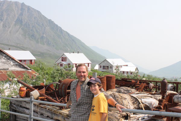 Jonna and Mark by one of the miners' bunk houses. They were all painted gray with red trim to make them cheerful for the hardworking miners