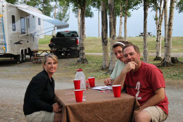 Grayson and Darby get in a game of Uno before leaving Matanuska Glacier