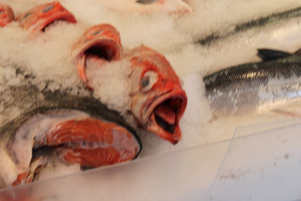 A common practice in the market to toss large fish after purchase
