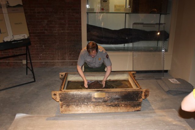 The park ranger demonstrated the technique to pan for gold