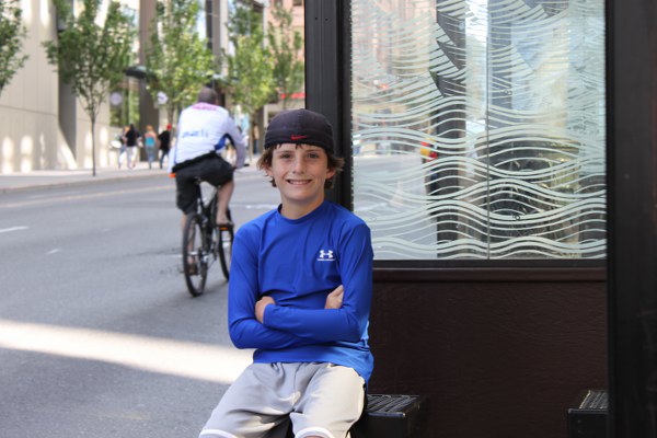 Grayson waiting for the "free" bus that never came!