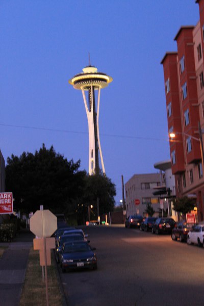 The Space Needle was right next to our hotel and glows at night