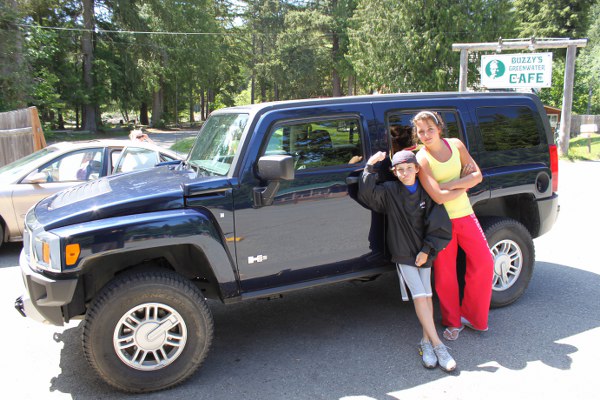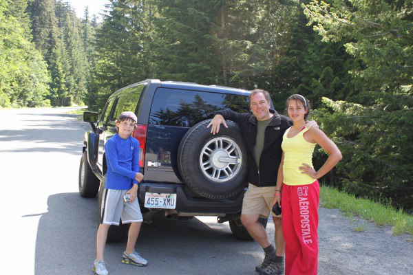 Grayson and Darby hanging out by our Hummer on the way to Mt. Rainier