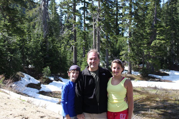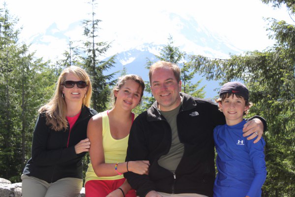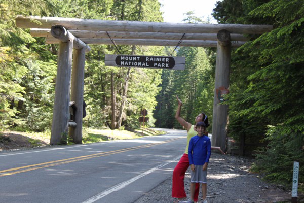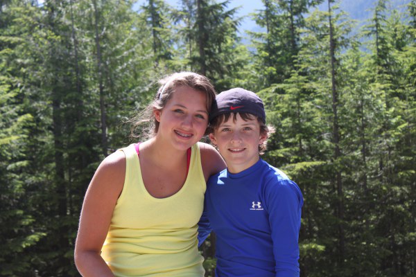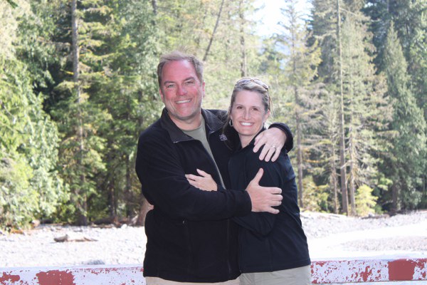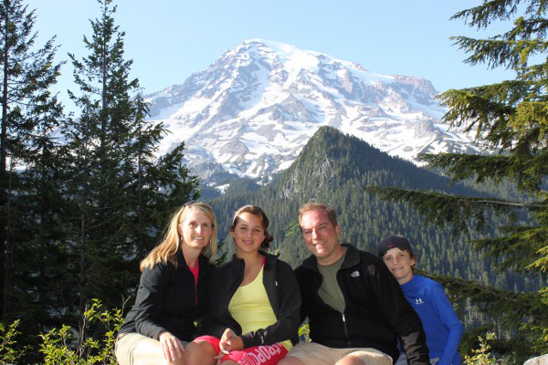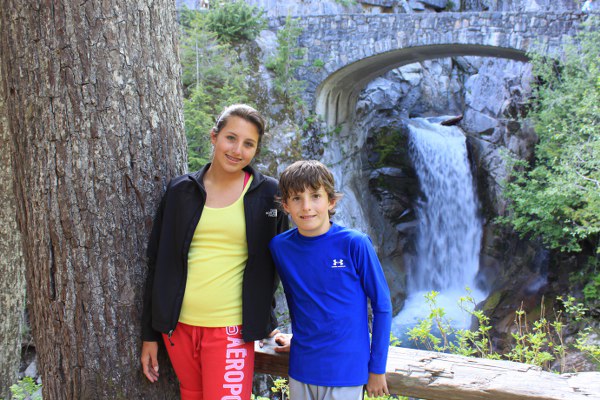 Darby and Grayson in front of The Restless Giant (Mt. Rainier)