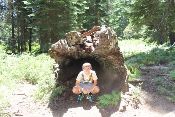 Grayson in front of Tharp's Log