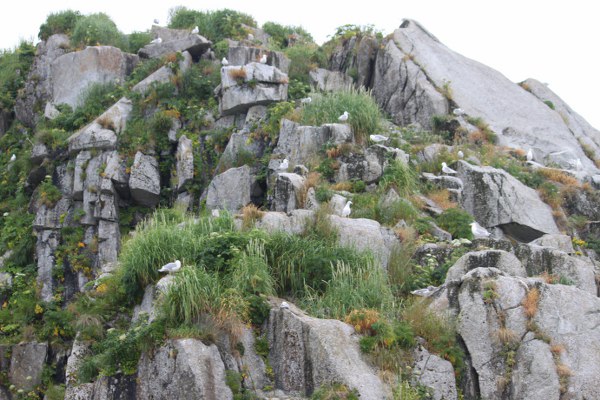 Common Murre (aka Alaska's Penguins) crowd onto this rock