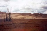 There is plenty of sandy desert in Arizona and California, but nothing quite like the Great Sand Dunes of Colorado. Seeming totally out of place at the edge of the snow-covered Rocky Mountains, these dunes of pure golden sand cover an area about 7 by 5 miles and reach heights of 700 feet above the floor of the flat San Luis Valley, making them the tallest in the US. The valley, which is over 7,500 feet in elevation at this point, extends for over 100 miles south into New Mexico and is bordered by the San Juan Mountains to the west and the lower Sangre de Cristo range to the east - these hills mark the edge of the Rockies and continue southwards towards Santa Fe.